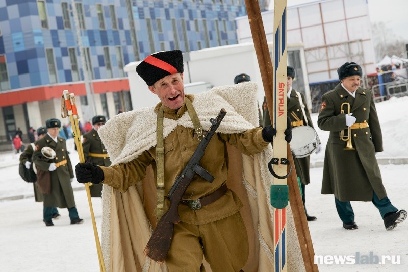У російському місті Красноярськ на честь 75-річчя перемоги над нацистською Німеччиною місцева влада влаштувала масовий лижний забіг в "ретро-костюмах".