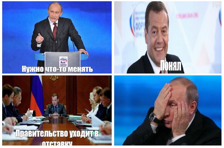 У мережі продовжують жартувати з приводу відставки уряду Російської Федерації, про яку оголосив прем'єр-міністр Дмитром Медведєв після виступу президента Росії Володимира Путіна з поводженням з Ради Федерації.