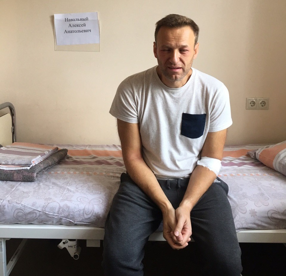 Російський опозиціонер Олексій Навальний опублікував перше фото з лікарні, куди він потрапив зі слідчого ізолятора з підозрою на алергію.