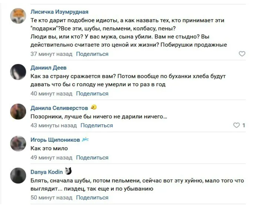 Водночас багато користувачів мережі такі подарунки обурили – вони назвали їх ганебними, а людей, які їх приймаються – продажними.