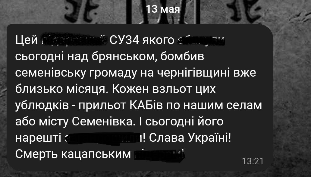 Варто зазначити, що за інформацією деяких Telegram-каналів, збитий винищувач місяць обстрілював Семенівську громаду Чернігівської області – злочинці відповіли за свої дії.