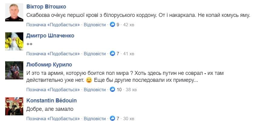 "І це та армія, яку боїться пів світу? Хоч тут Путін не збрехав - їх там справді вже немає. :-) Ще б інші наслідували їх приклад..." - додає інший користувач.