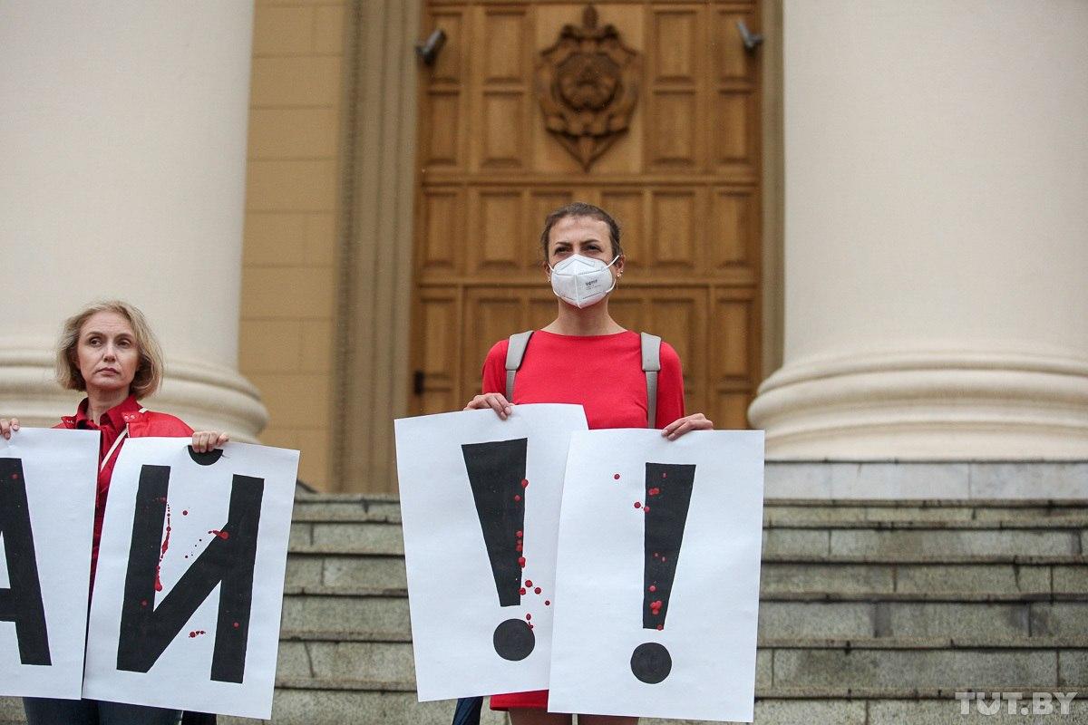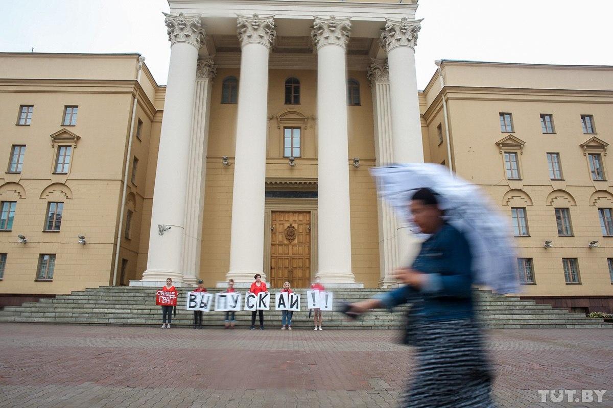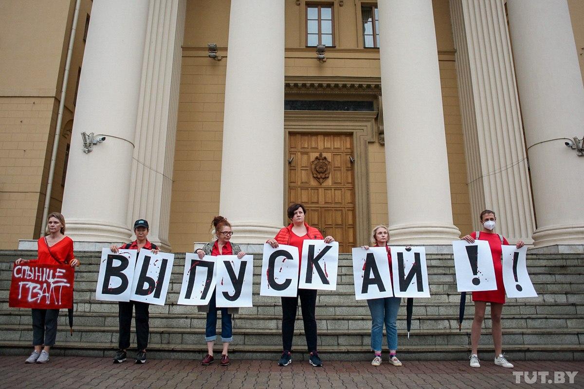 У середу, 19 серпня, під стінами КДБ Білорусі в Мінську зібралися на підтримку політв'язнів люди в червоному одязі, яка символізує криваві насильницькі розгони демонстрацій після виборів президента в країні.