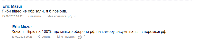Ведучий російського пропагандистського каналу "Росія-1" Євген Попов, більш відомий як "чоловік Скабєєвої", запитав у міністра оборони, чи переможе РФ у війні. На що Шойгу лише мовчки розвів руками, чимось нагадавши характерний помах крилами, які роблять пінгвіни.