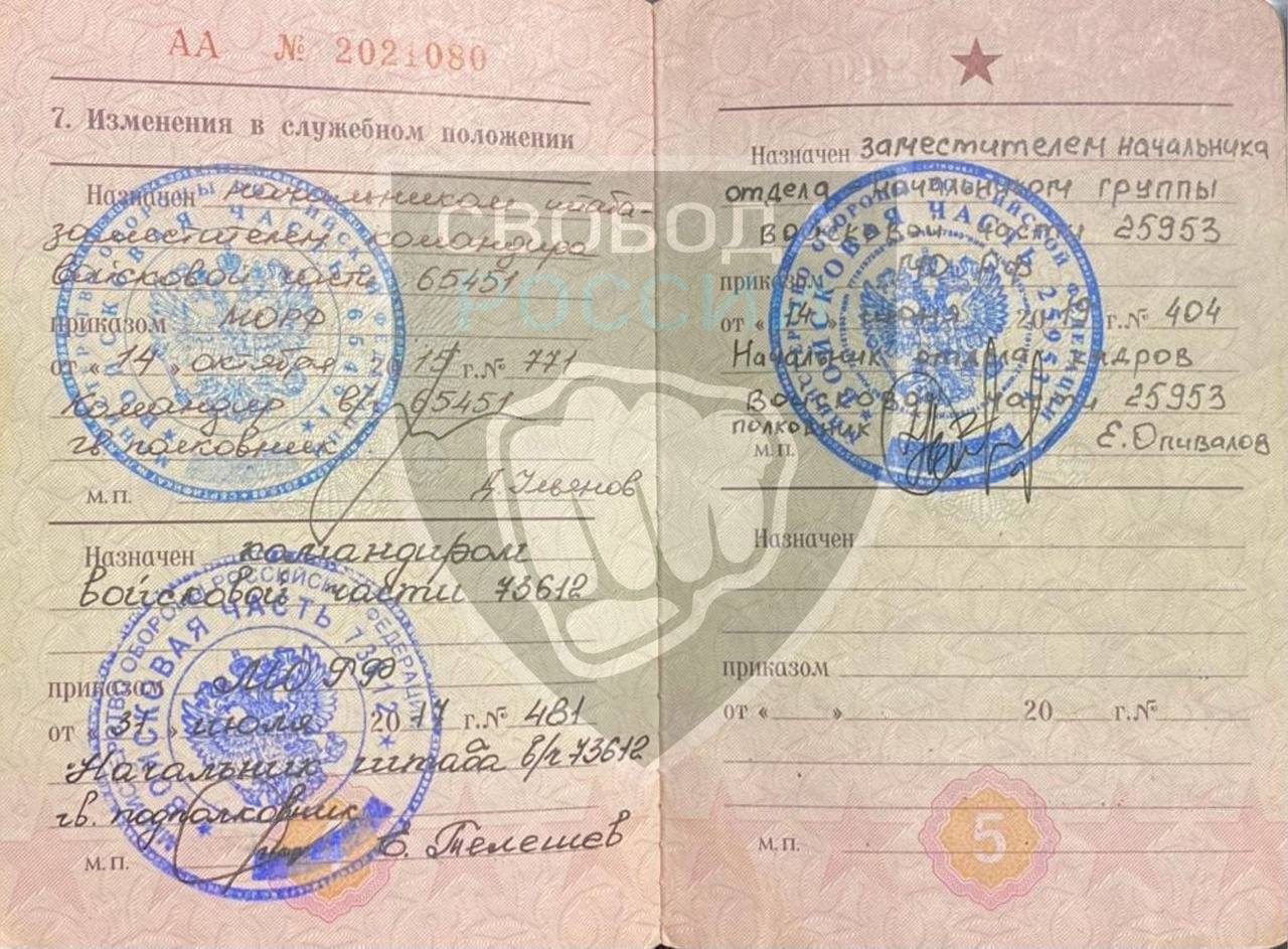 Водночас Легіон "Свобода Росії" опублікував ще скріншоти документів загиблого офіцера.