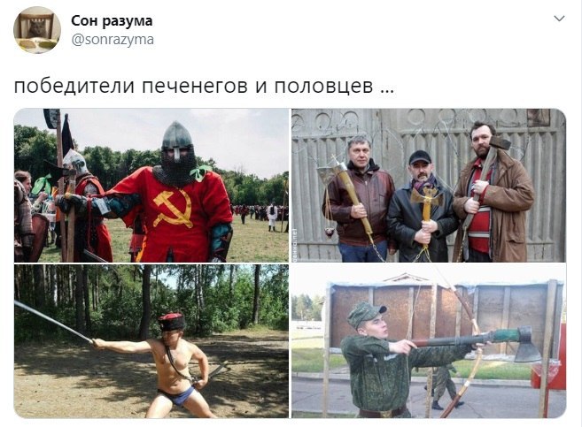 Так, на деяких з них можна побачити котів, які міркують про половців та печенігів.