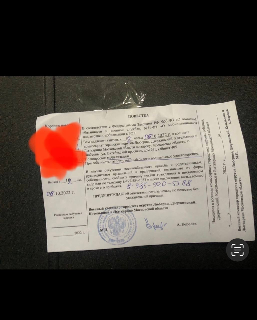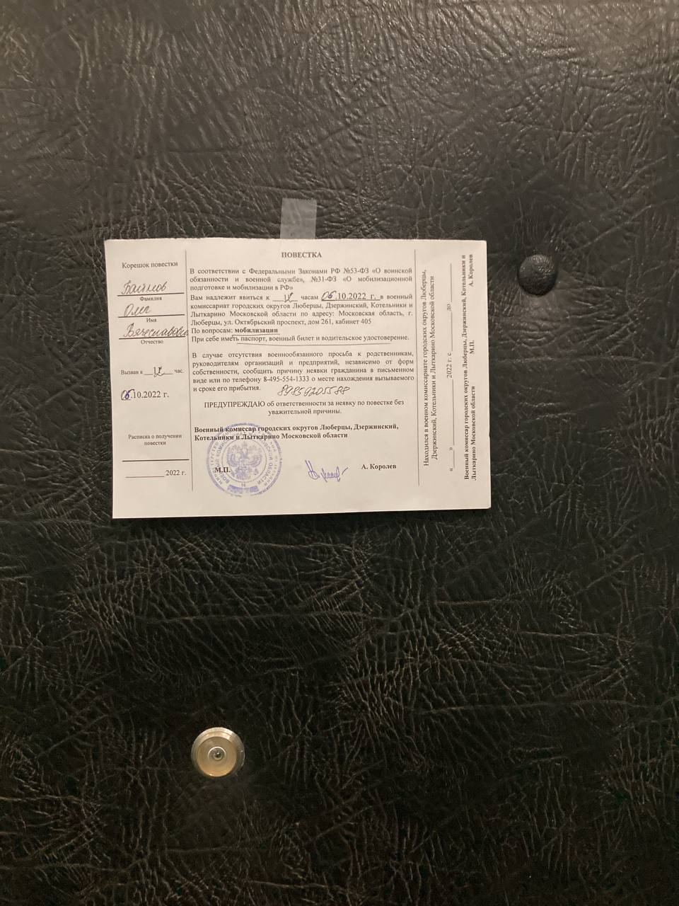 А неподалік Москви, у Люберцях, повістки почали приклеювати на двері квартир.