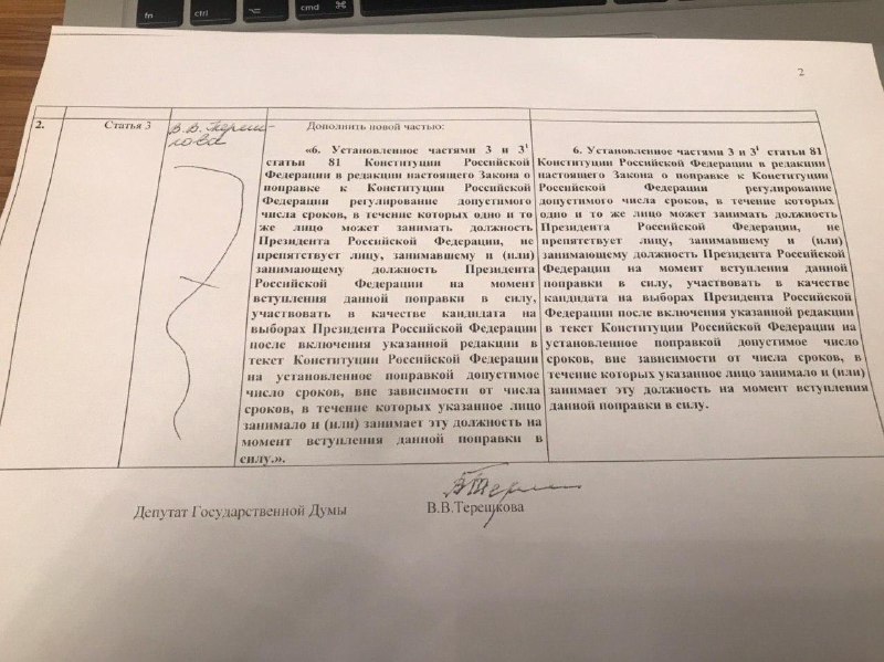 Однак замість цього Путін запропонував додати до Конституції варіант з "обнуленням" термінів, в разі, якщо Конституційний суд схвалить цю поправку.
