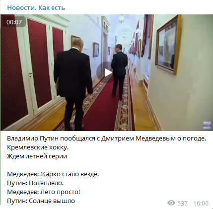Репліки про похолодання і сніг, якими обмінялися в коридорі Кремля Путін і Медведєв, викликали велику кількість їдких коментарів.