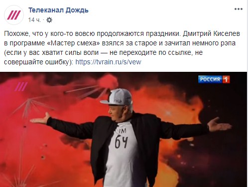 Кремлівський пропагандист Дмитро Кисельов зачитав реп на телеканалі "Росія 1".