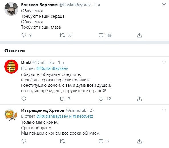 Крім того, в контексті прийнятої правки, мережа зарясніла яскравими фотожабами. На одній з них зображено Путіна, обличчя якого покрито зморшками, а в підпису до портрету йдеться: "Час на розкачку тепер є".