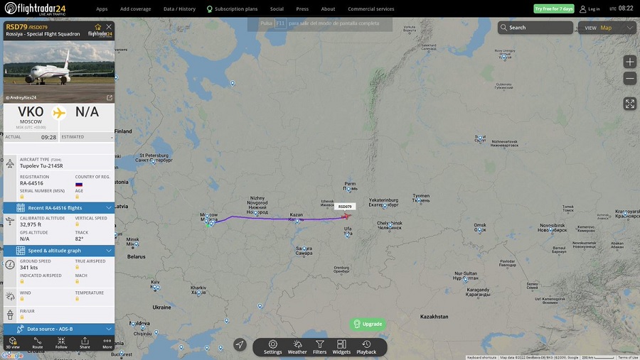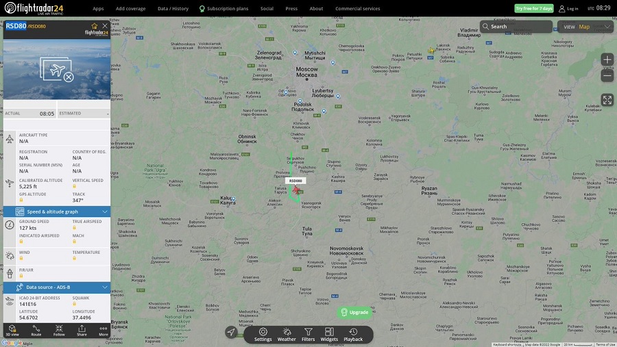 На скріншотах видно 8 бортів, що вилетіли з Московського району за Урал у бік Тюмені.