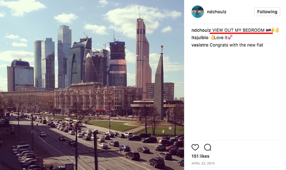 "Ну, нерухомість у такої людини теж солідна. В його стовідсоткової власності ми бачимо 110 метрову квартиру в центрі Москви на Великий Дорогомиловській. Така коштує 25-30 мільйонів. Вид з вікон теж класний", - йдеться в матеріалі.