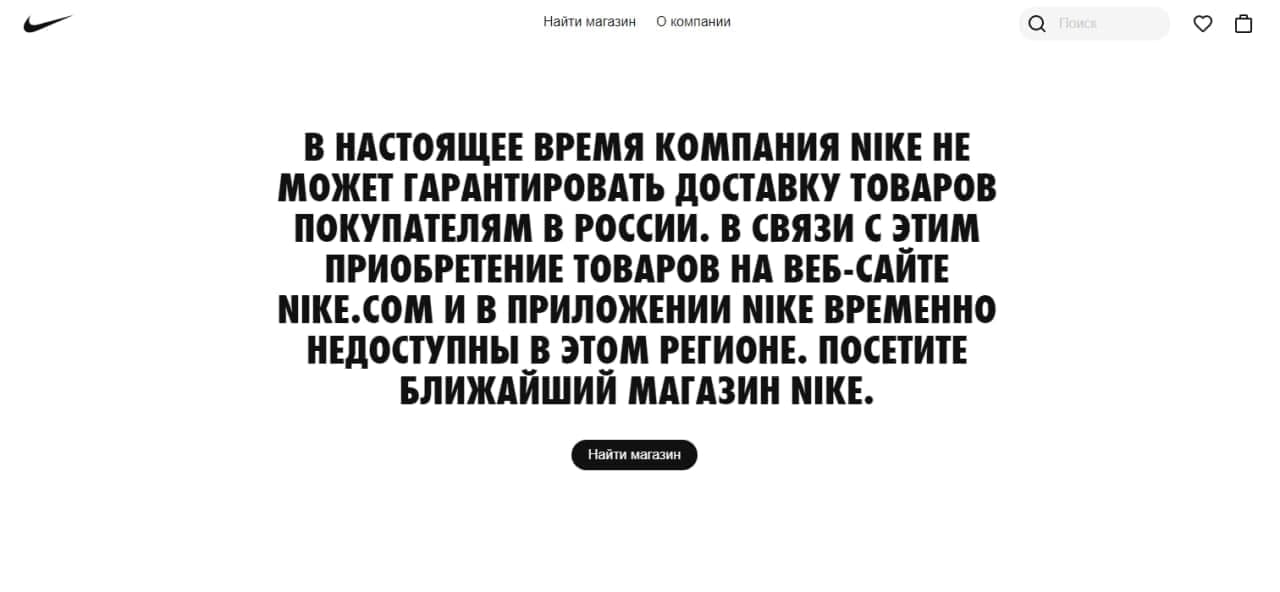 Nike закрив продажі на офіційному сайті в Росії та, швидше за все, залишить ринок.