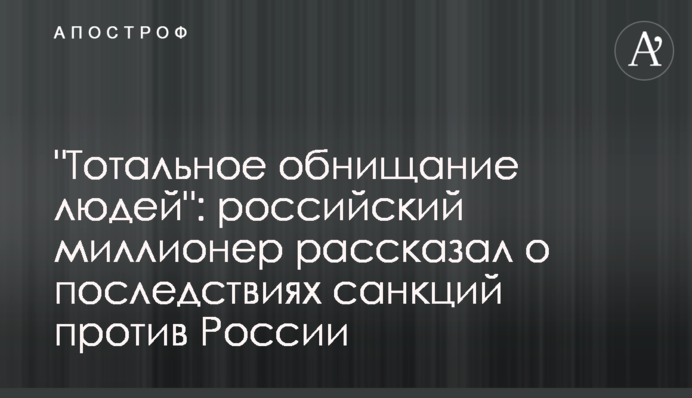 "Те, що прийнято проти нашої країни, означає лише одне - тотальне зубожіння людей, і це катастрофа, до якої нас привів Путін", - сказав Чичваркін.