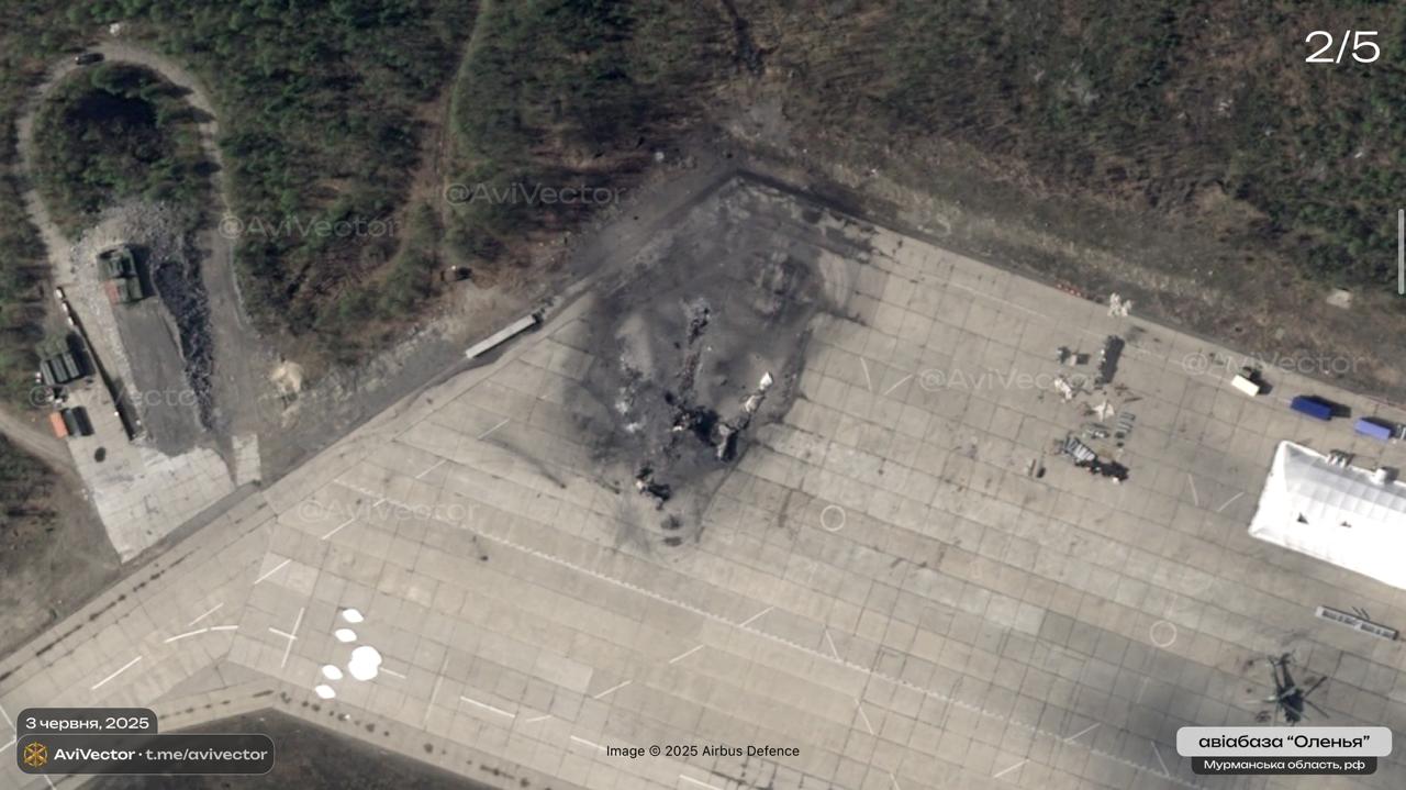 У мережі опублікували супутникові знімки наслідків удару по військовому аеродрому Оленья в Мурманській області, що був здійснений в рамках спецоперації "Павутина".