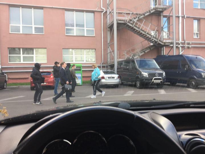 Видання опублікувало фото людей в масках поруч з Максимом Знаком на парковці біля штабу. Тут також стоять кілька характерних мікроавтобусів з тонованими стеклами, один з них без номерів.