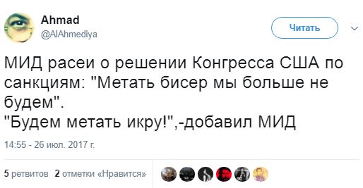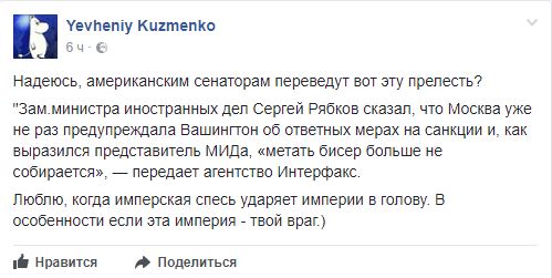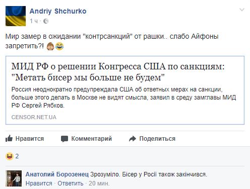 Як повідомляв "Апостроф", користувачі соціальних мереж активно обговорюють голосування Сенату США щодо нових санкцій проти Росії.
