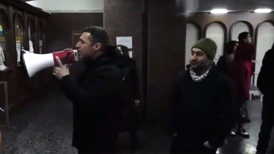 Учасники акції увійшли, вигукуючи гасла "Вірменія без Нікола", однак далі поста охорони вони не пройшли і покинули будівлю.