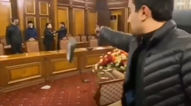 Після того, як стало відомо про угоду про припинення бойових дій, в Єревані почали збиратися люди, які увірвалися в будівлю уряду і почали громити його зсередини.