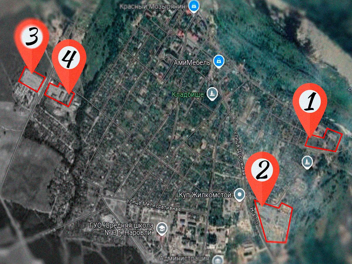 Локації у Наровлі, які займали російські військові на початку 2022 року