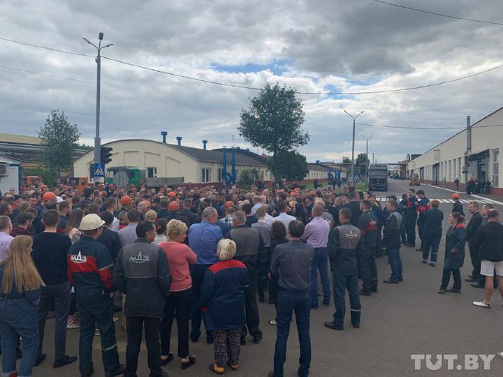 Один з працівників МТЗ повідомив, що працівники підприємства вимагають відпустити всіх затриманих на мирних акціях, прибрати з вулиць ОМОН, провести чесні перевибори з присутністю міжнародних спостерігачів і відпустити всіх політичних в'язнів.