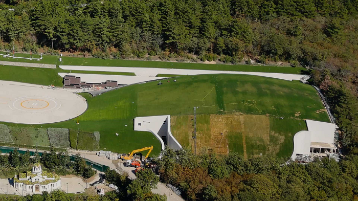 Над самим майданчиком здіймається дивний горб, який приховує прямокутник з округленими кутами розмірами 56 на 26 метрів. Виявилося, що це хокейний майданчик - заритий під землею льодовий палац висотою з п'ятиповерховий будинок.