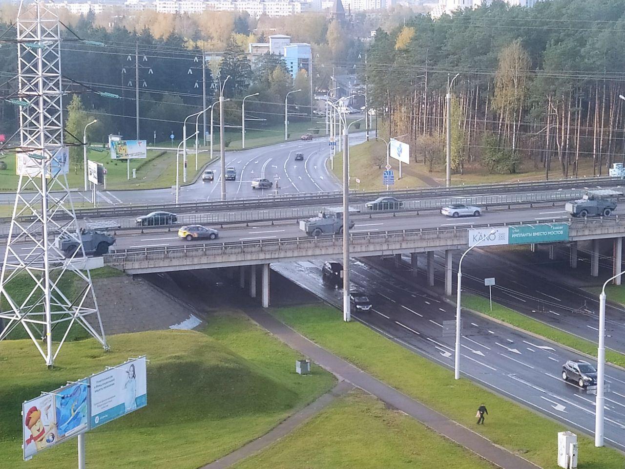 На опублікованому знімку видно, як в сторону центру Мінська по мосту рухається колона бронетехніки.