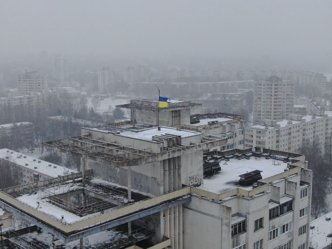 Прапор України було піднято на даху однієї з багатоповерхівок Мінська.