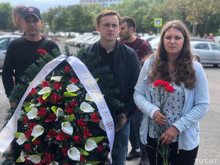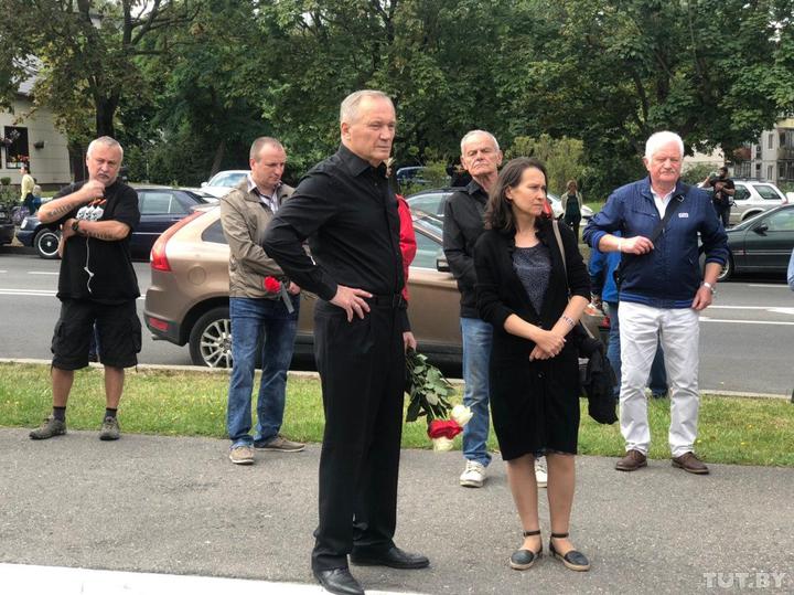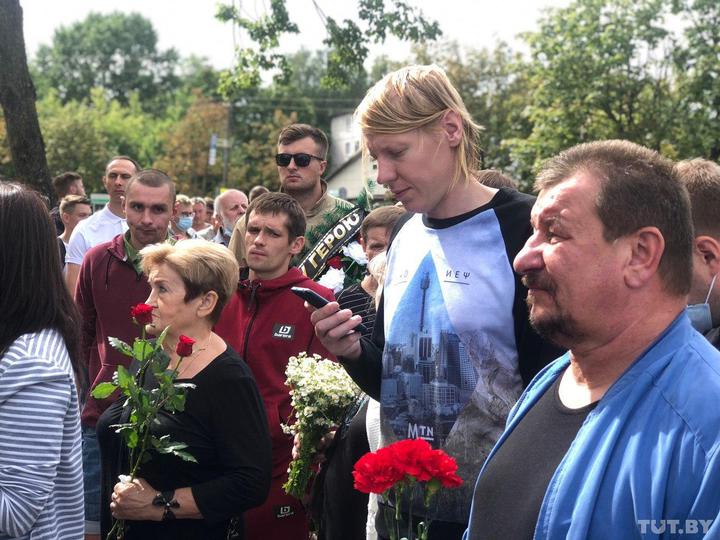 Однак на прощання прийшло багато мінчан, які вишикувалися по обидва боки вулиці з квітами і біло-червоно-білими прапорами. Зокрема тут присутній екс-кандидат в президенти 2010 року, поет і політик Володимир Некляєв.