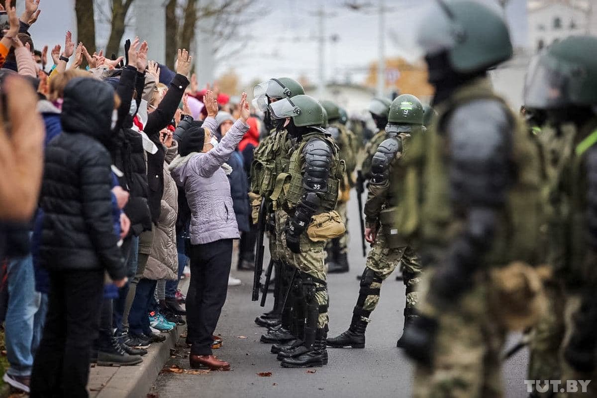 У столиці Білорусі Мінську, де з серпня кожні вихідні проходять протести з вимогою відставки Олександра Лукашенка з поста президента і проведення нових президентських виборів, у неділю, 1 листопада, силовики знову приступили до розгону протестувальників, чути постріли, на вулиці міста пригнали водомет.
