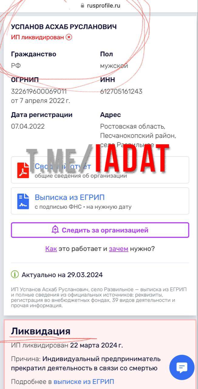 Пізніше з'ясувалося, що у загиблого прізвище та по-батькові за паспортом – Успанов Асхаб Русланович. Зазначається, що незважаючи на дані в паспорті, знайомий він у своєму колі був із прізвищем Касуєв та по-батькові Хасмагомедович.