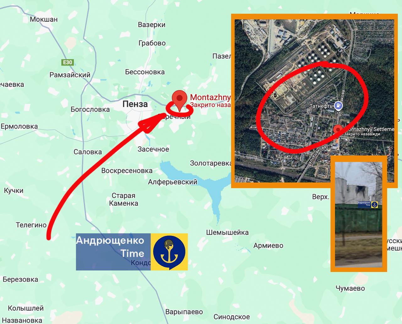 Проте Андрющенко писав, що у Монтажному щонайменше три БПЛА уразили нафтосховища Пензенського заводу нафтогазового обладнання