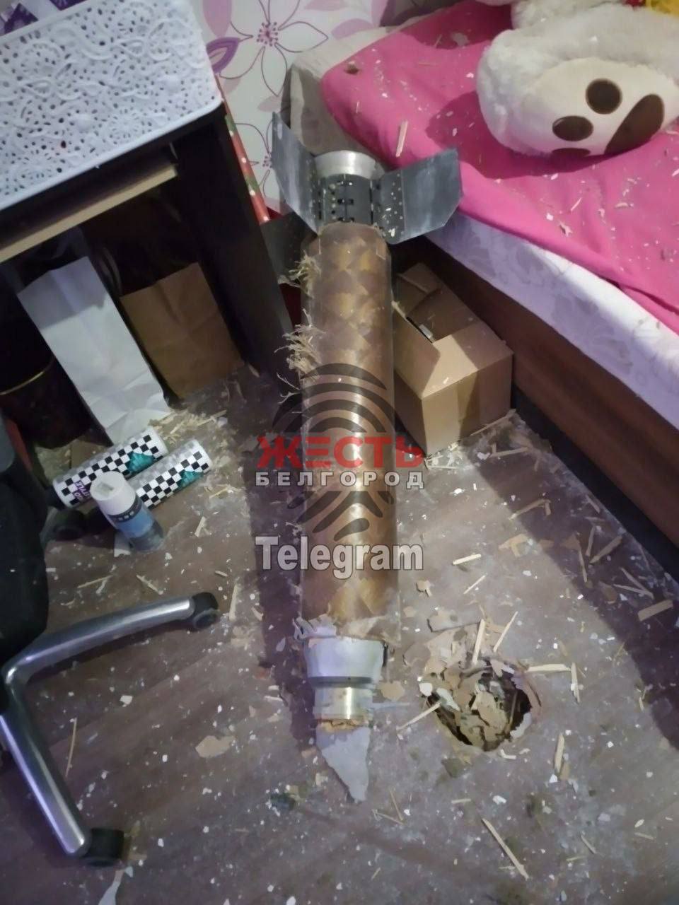 У російському Бєлгороді знову неспокійно – ракета від ворожої ППО пробила стелю в будинку та опинилася у дитячій спальні.