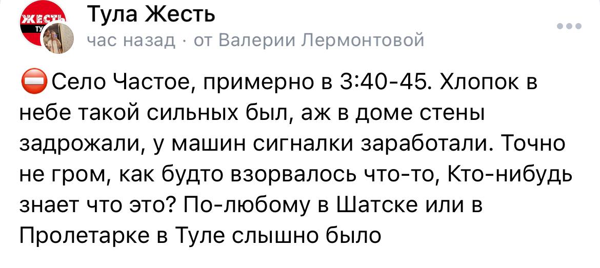 Тим часом росіяни в соцмережах розповіли, що все було не так, як рапортує міноборони. Користувачі повідомляють, що близько 4 ранку за московським часом в селі Частое був гучний хлопок, який було чутно в кількох найближчих населених пунктах: тремтіли стіни, а в авто спрацювала сигналізація.