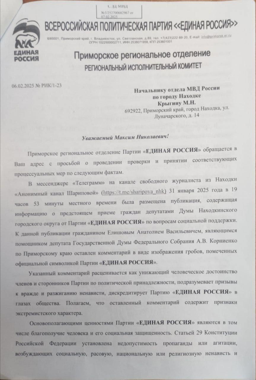 Зазначається, що ще в січні один із місцевих каналів опублікував розклад прийому громадян депутатами партії "Єдина Росія" в Находці.