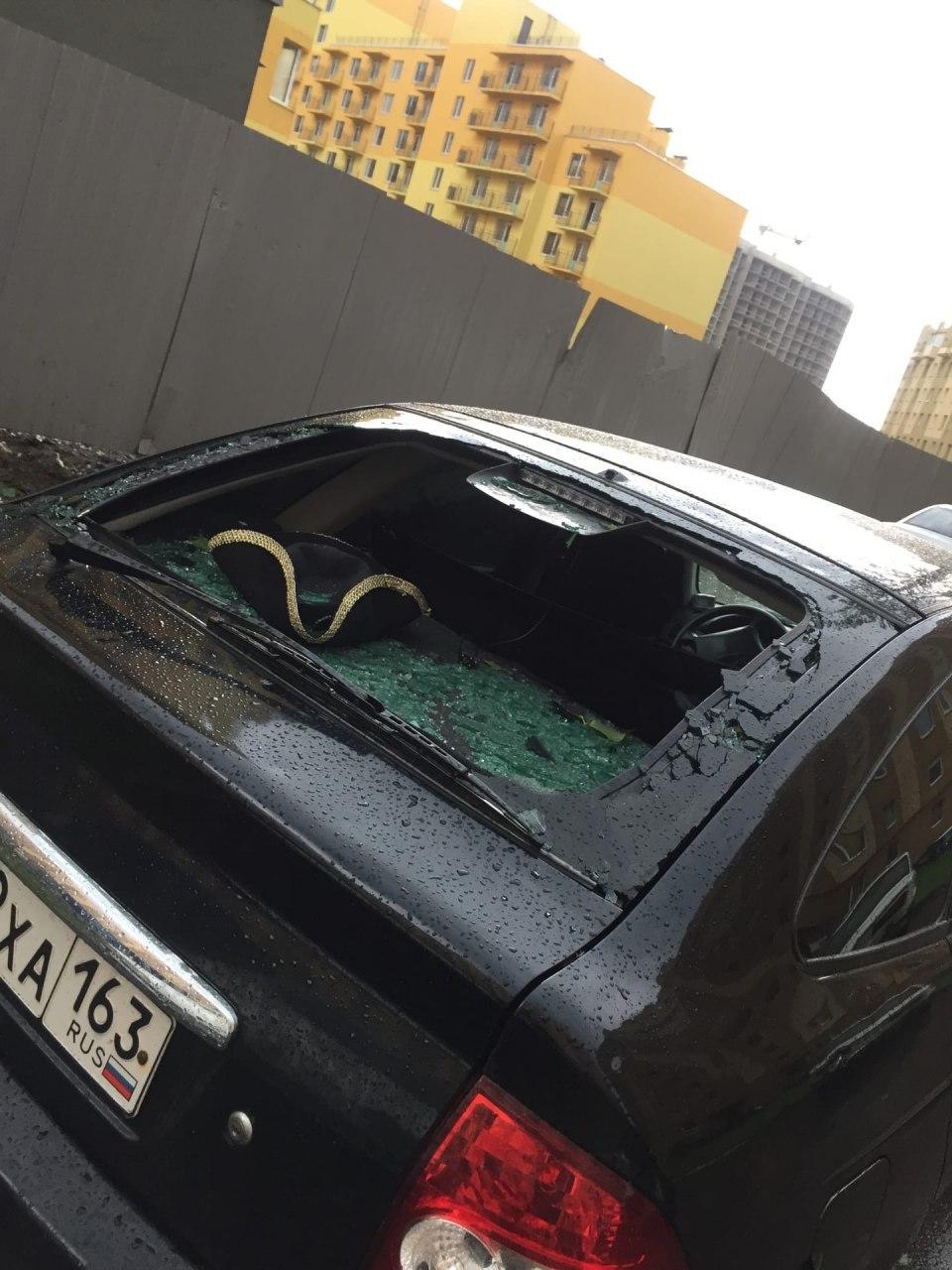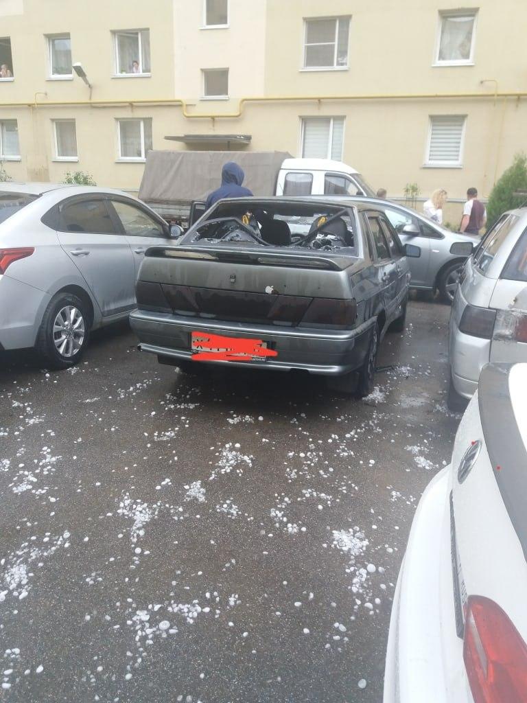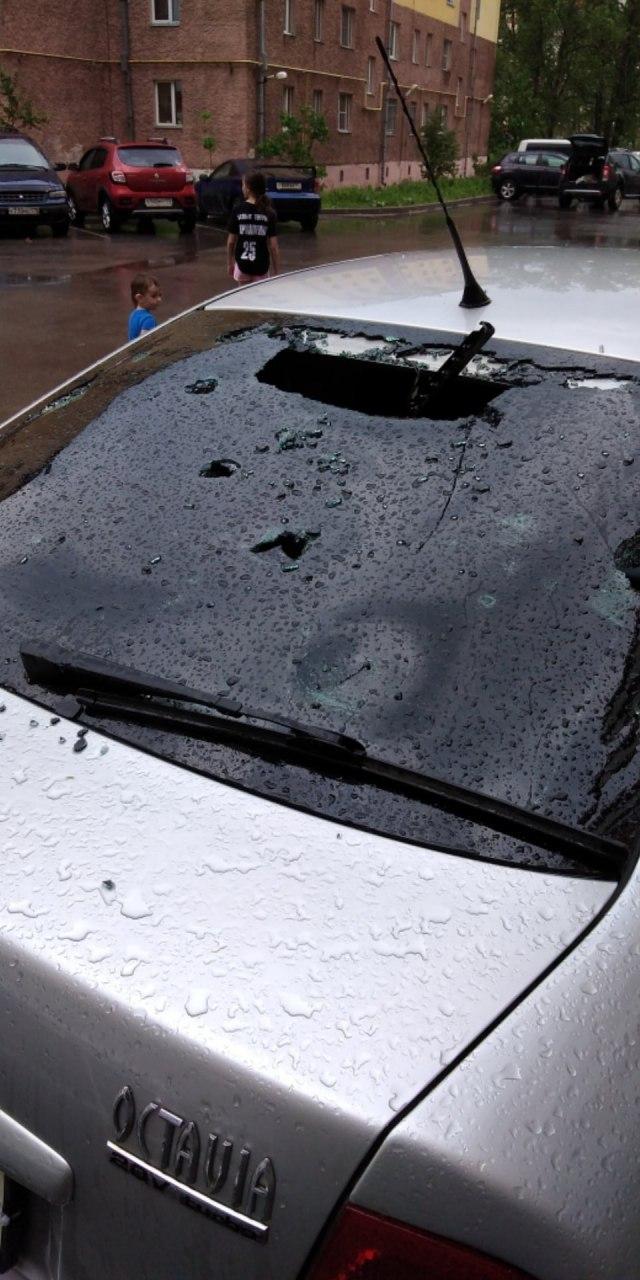 "Це селище Ленсоветовське, околиця Санкт-Петербурга. Тільки що тут пройшов град розміром з куряче яйце, десятки автомобілів розбито стихією", - підписані опубліковані знімки.