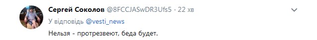 "Не можна - протверезіють, біда буде", - написав користувач Twitter Сергій Соколов.