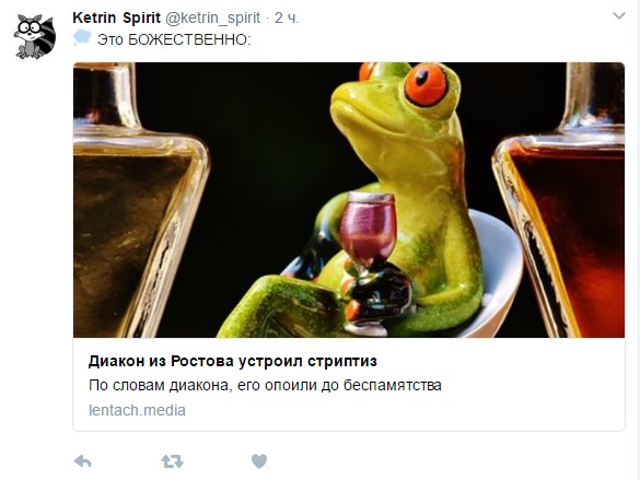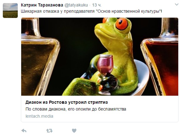 "Це божественно", "Шикарна відмазка у викладача моральної культури", "Стрип-дяк", "Скрепно!", "Вони його не тільки споїли, але і в труси сороміцькі переодягли) колом огудники віри", - коментують ситуацію блогери.