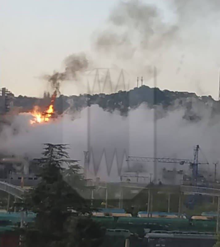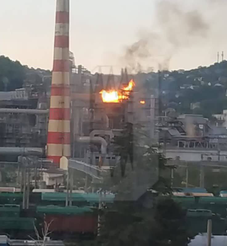 Писали, що саме так палав нафтопереробний завод в Туапсе після "візиту" БПЛА – у місті близько 15 хвилин працювала сирена, місцеві мешканці повідомляли про перебої зі зв"язком.