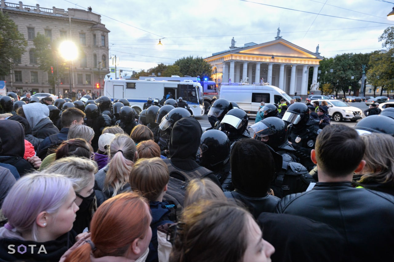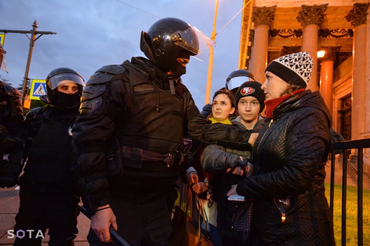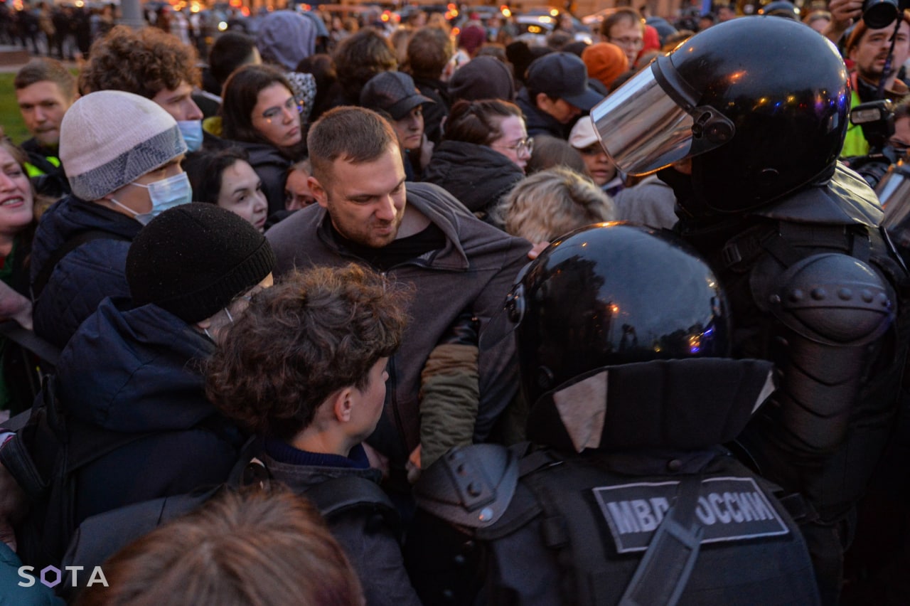 У Санкт-Петербурзі затримали щонайменше 497 росіян, тоді як у Москві силовики за наказом Кремля відправили у відділки 468 осіб. Російські ОМОНовці затримали навіть непритомну дівчину й потягли її у невідомому напрямку. Також силовики відганяють журналістів із місця подій.