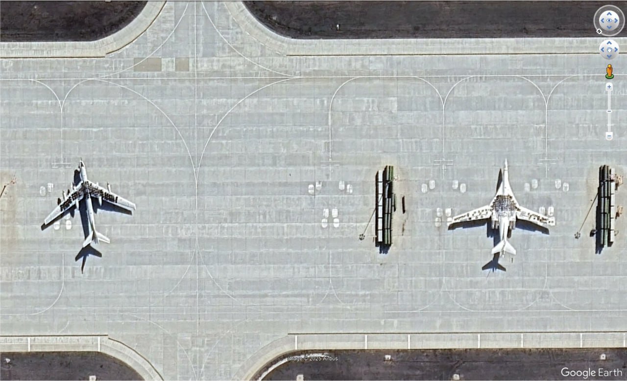 Він зазначив, що на них видно на військовій авіабазі російських стратегічних бомбардувальників лише лічені реальні літаки, а також багато намальованих силуетів.
