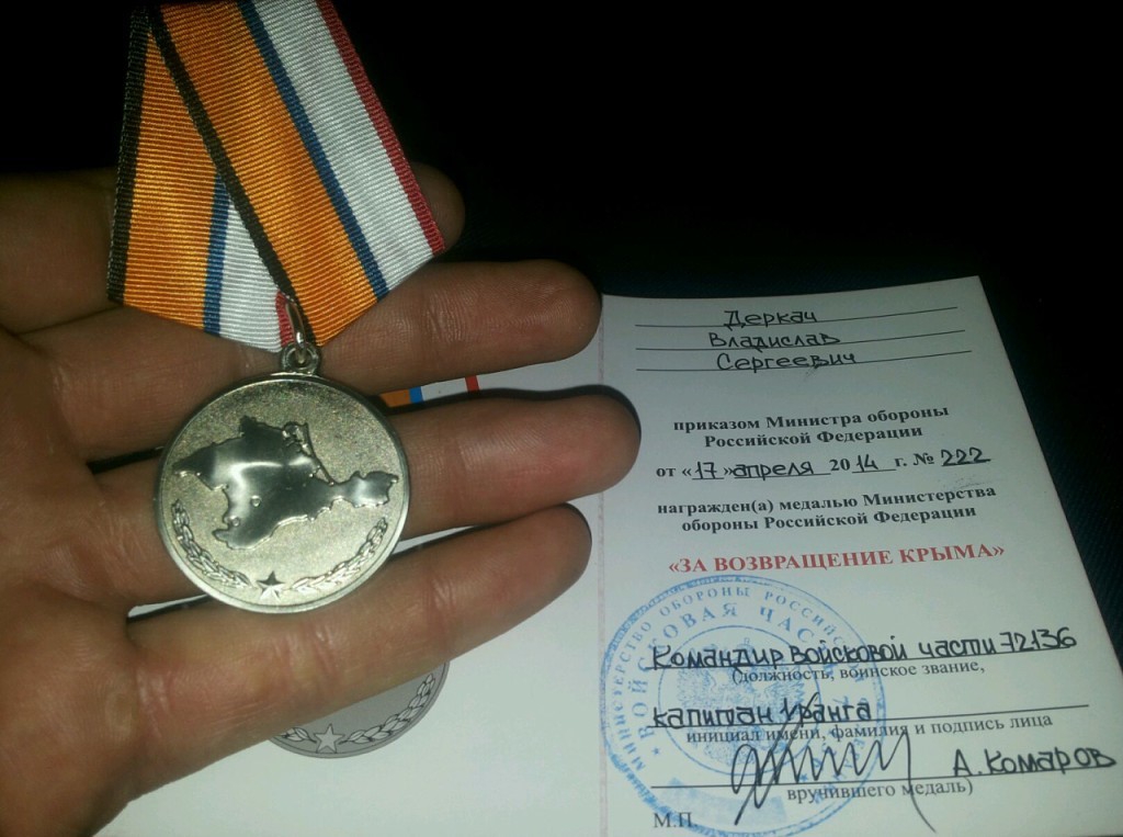Гаріфуллін опублікував фото своєї нагороди, яку отримав за участь в операції захоплення Криму.