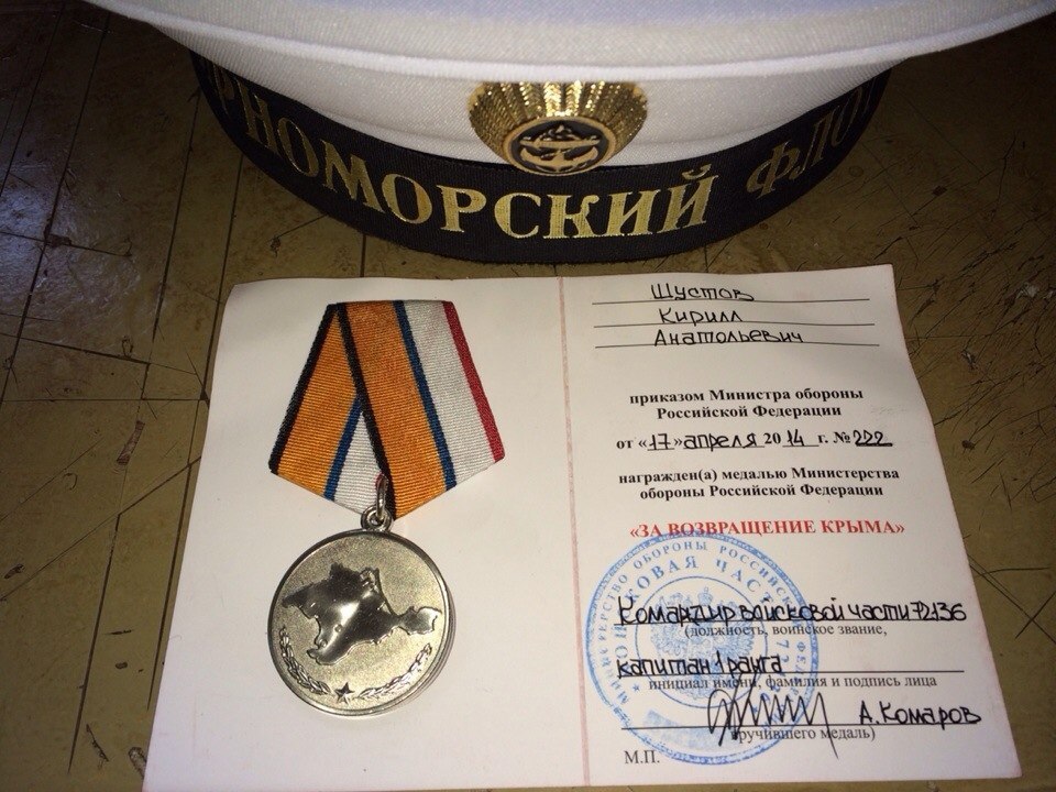 Також на фото був ідентифікований Шустов Кирило Анатолійович (1990 року народження, Таганрог). Він також служив на БДК "Микола Фільченков" і теж опублікував в своєму профілі фото з нагородою за захоплення Криму.