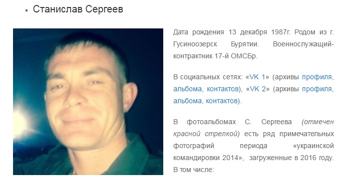Українські волонтери зі спільноти InformNapalm встановили осіб російських військовослужбовців з 17-ї окремої мотострілкової бригади 58-ї загальновійськової армії Південного військового округу, які брали участь у боях на Донбасі проти Збройних сил України.