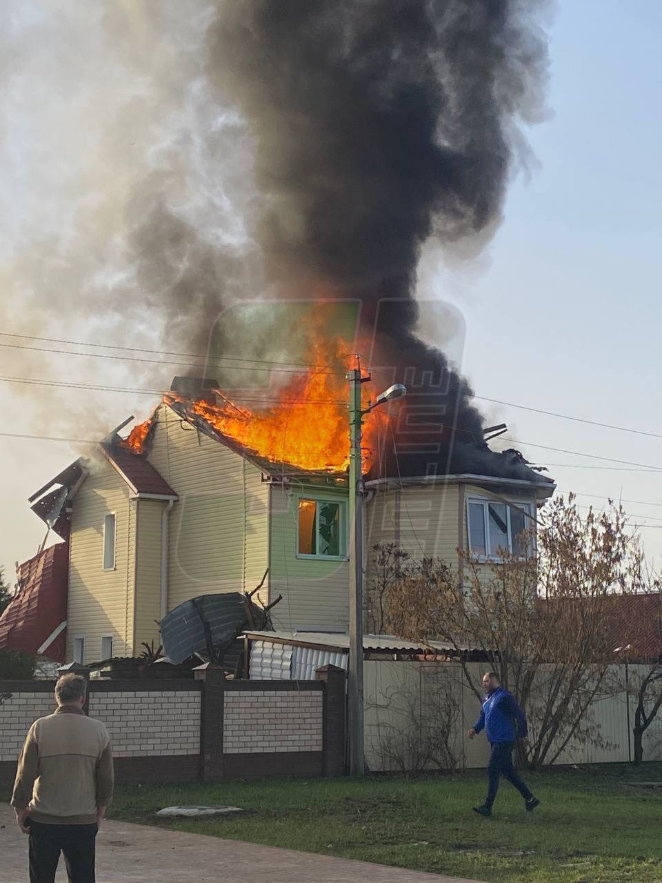 Після чого почалось активне загоряння будинку. Окрім кадрів пожежі, в мережі також опублікували фотографії з іншими наслідками роботи ППО в Бєлгородській області.
