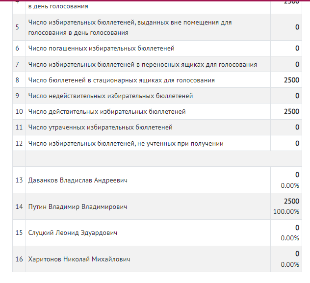 Аналогічна ситуація і у Волоконівському районі: там також стовідсоткова явка, і всі обрали Путіна.