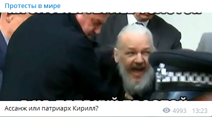 У мережі піднялася хвиля жартів через схожість постарілого засновника WikiLeaks Джуліана Ассанжа, якого заарештували 11 квітня в Британії, з главою РПЦ патріархом Кирилом.