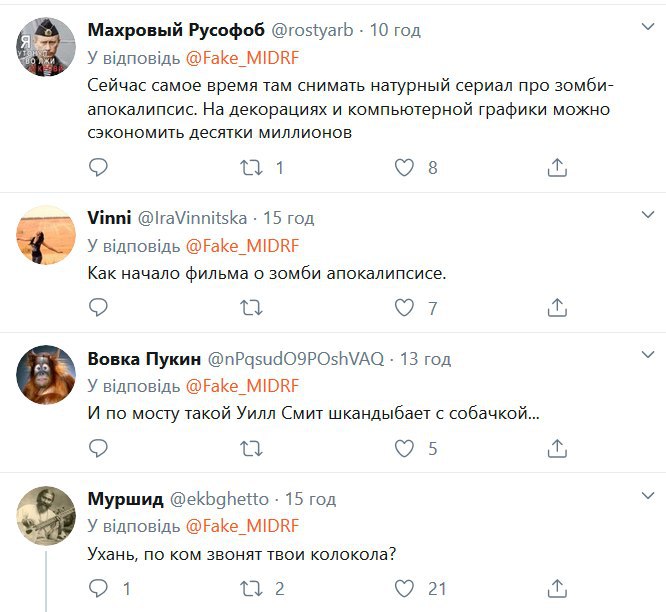 "Як після аварії на Чорнобильській АЕС", "Зараз саме час там знімати натурний серіал про зомбі-апокаліпсис. На декораціях та комп'ютерній графіці можна заощадити десятки мільйонів", "І по мосту такий Уілл Сміт чимчикує з собачкою...", - пишуть коментатори.