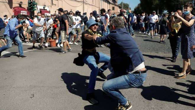 У суботу, 6 червня, в Римі (Італія) люди вийшли на демонстрацію з вимогою відставки уряду через реакцію на коронавірусну кризу.